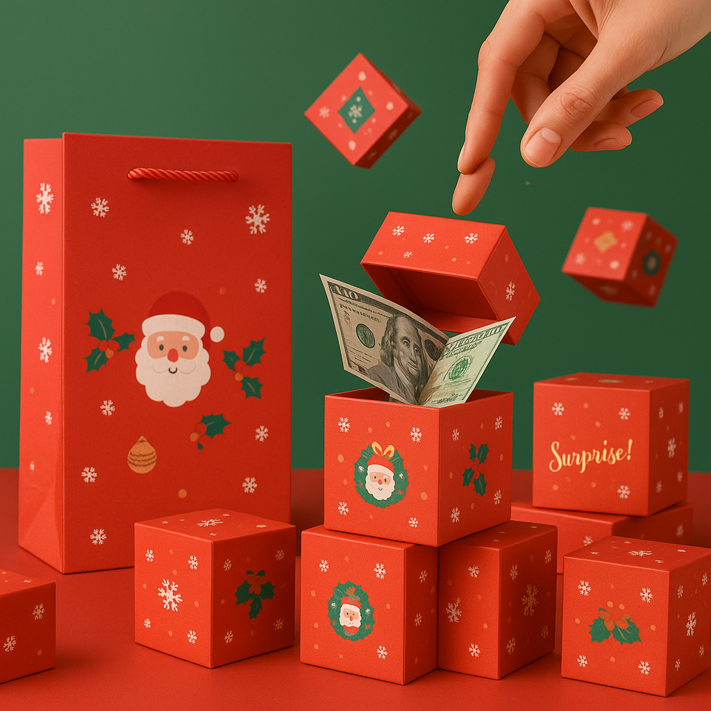 An elegant gift box 🎁 that spills out banknotes when opened. Perfect for giving money in a striking way – for holidays, birthdays, anniversaries, and any occasion when a simple envelope just isn't enough. A simple idea, a powerful effect.